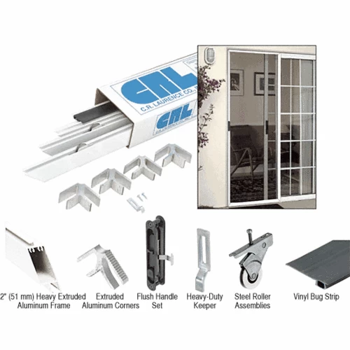 CRL Rio Extruded K.D. Screen Door Kits for sliding patio doors offer the utmost in durability and utility in all weather conditions. Their extruded aluminum frame members measure an overall two inches (51 millimeters) wide x one inch (25.4 millimeter) thick for extra strength, and are miter cut for the extruded corners that come with each Kit. You have the choice of three finishes: Satin Anodized, plus Bronze or White powder coated, in four standard widths: 31 inches (787 millimeters), 37 inches (940 millimeters), 49 inches (1245 millimeters), 61 inches (1549 millimeters) and two heights: 81 inches (2057 millimeters) and 97 inches (2464 millimeters). The flush mounted Latch Assembly, spring-loaded Steel Ball Bearing Roller Assemblies, and Vinyl Bug Strip are included. Just add the Screen Wire and .165″ Retainer Spline of your choice. If you want to offer your customer the best sliding screen door, choose one of these Rio K.D. Screen Door Kits.