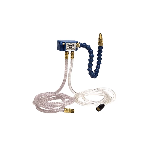 The CRL Mist Coolant Unit has just about everything you need to lubricate your saw blade professionally. Just add an air supply, the liquid siphon tube can go into any open container. The magnetized base holds firmly, and the swivel spray head will adjust to any direction. It comes with separate adjustments for air and fluid.