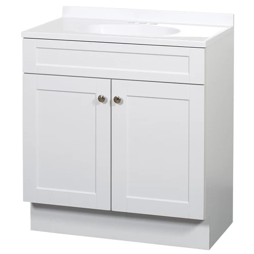 Zenna Home 2-Door Shaker Vanity with Top, Sink Material: Cultured Marble, Sink Color: White, Wood, White, 30 in W, 18 in D, 35 in H